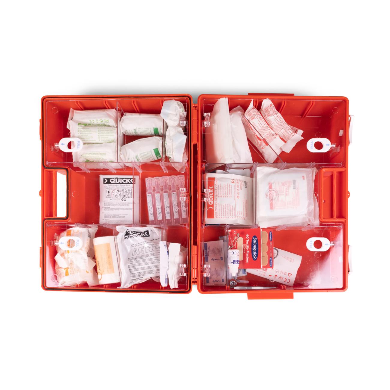 BHV Verbandtrommel Kantoor & Scholen wordt geleverd in een verbandtrommel A multi inclusief wandhouder. De koffer is voorzien van doorzichtige binnenplaten waardoor er bij het openen direct een goed overzicht van de aanwezige middelen is. Deze zeer uitgebreide verbandkoffer is specifiek gericht op scholen.